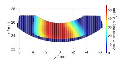 由于磨損與邊界摩擦和接觸中的滑動(dòng)距離相關(guān),因此使用能量模型基于摩擦能計(jì)算磨損。根據(jù)這個(gè)能量概念,摩擦能不會(huì)完全以熱能的形式消散,而是不可逆地以機(jī)械引起的網(wǎng)格缺陷形式儲(chǔ)存在材料中。能量會(huì)不斷累積,直到達(dá)到臨界水平,這會(huì)導(dǎo)致材料斷裂和磨損。